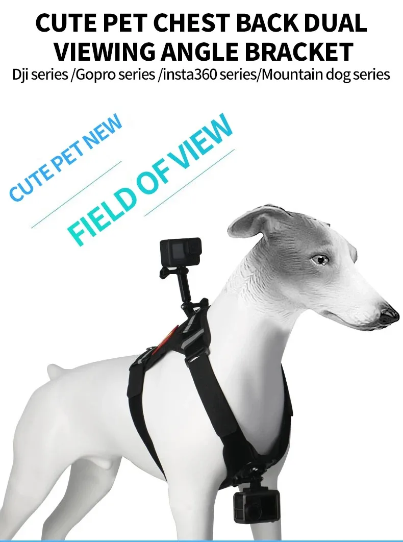 For DJI Action 5Pro/4/3 Insta360 Acepro 2/GoPro13 Camera Pet Harness Holder Cat Dog Chest Back Fixed Dual Viewing Angle Bracket